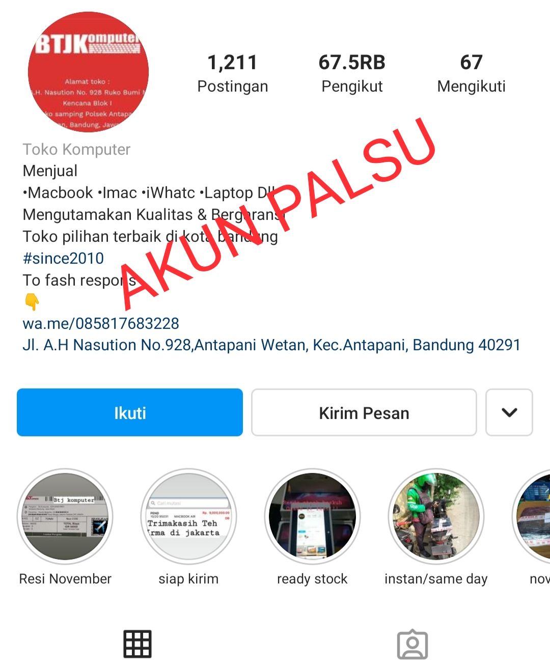 Hati-hati Akun Yang Mengatasnamakan BTJ Komputer